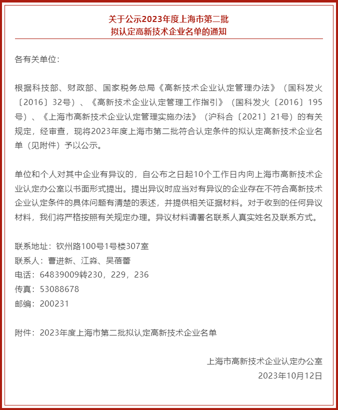 近日,根據(jù)科技部、財政部、國家稅務(wù)總局《高新技術(shù)企業(yè)認定管理辦法》等相關(guān)規(guī)定,公司順利通過上海市高新技術(shù)企業(yè)認定辦公室審查認定。